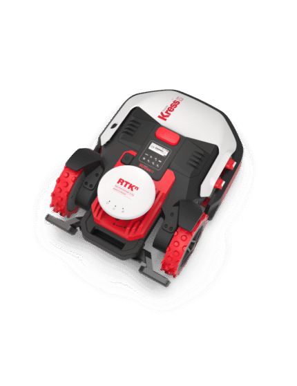 Une tondeuse Kress sans fil RTK n KR233E pour les terrains allant jusqu’à 18 000 m². Ce modèle est idéal car il se charge automatiquement vers sa station de charge. Instruit par le réseau RTK n de Kress, il navigue sur votre pelouse avec une précision centimétrique. Il n’est pas nécessaire d’installer un câble de délimitation ni une antenne de référence fixe sur la pelouse. L’algorithme de navigation à l’estime garantit la précision lorsque les lignes de visée vers les satellites sont bloquées par des arbres et des bâtiments. Grâce à la technologie MAP™ (Mowing Action Plan), elle entretient efficacement les pelouses jusqu’à 18000 m² (12000 m² recommandés).