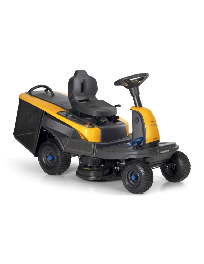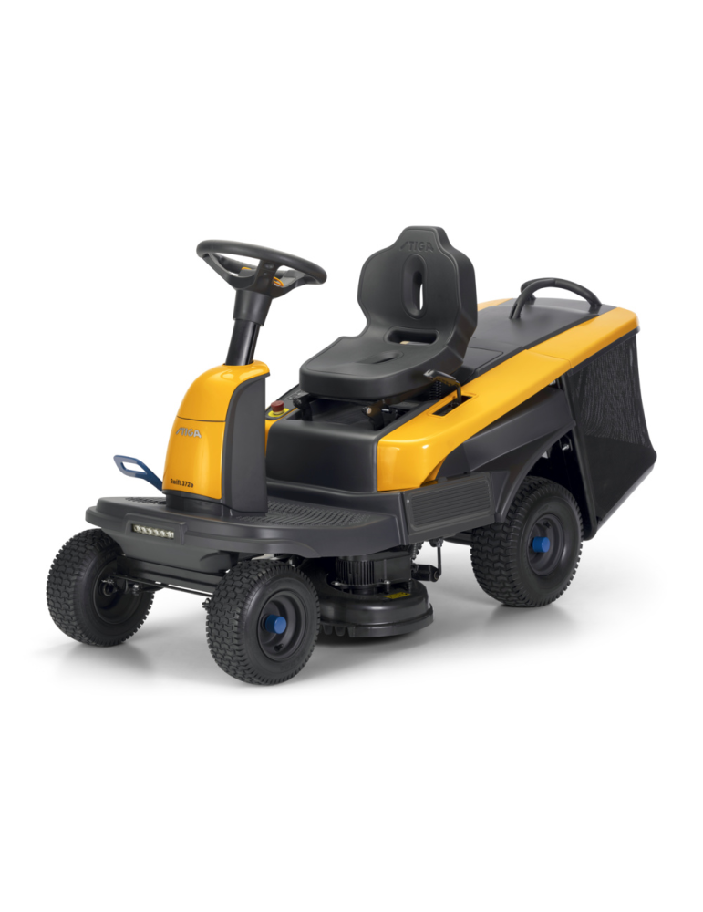 Le rider Stiga Swift 372e est la seule autoportée avec des batteries interchangeables et partageables. Permet de tondre jusque 2200m². Transmission électrique et le mulching intégré. Le réglage de la coupe manuelle de hauteur permet de choisir parmi 6 positions de 30 à 80 mm. Largeur plateau de coupe de 72cm. Chargeur de batterie rapide inclus + prise USB et bluetooth.